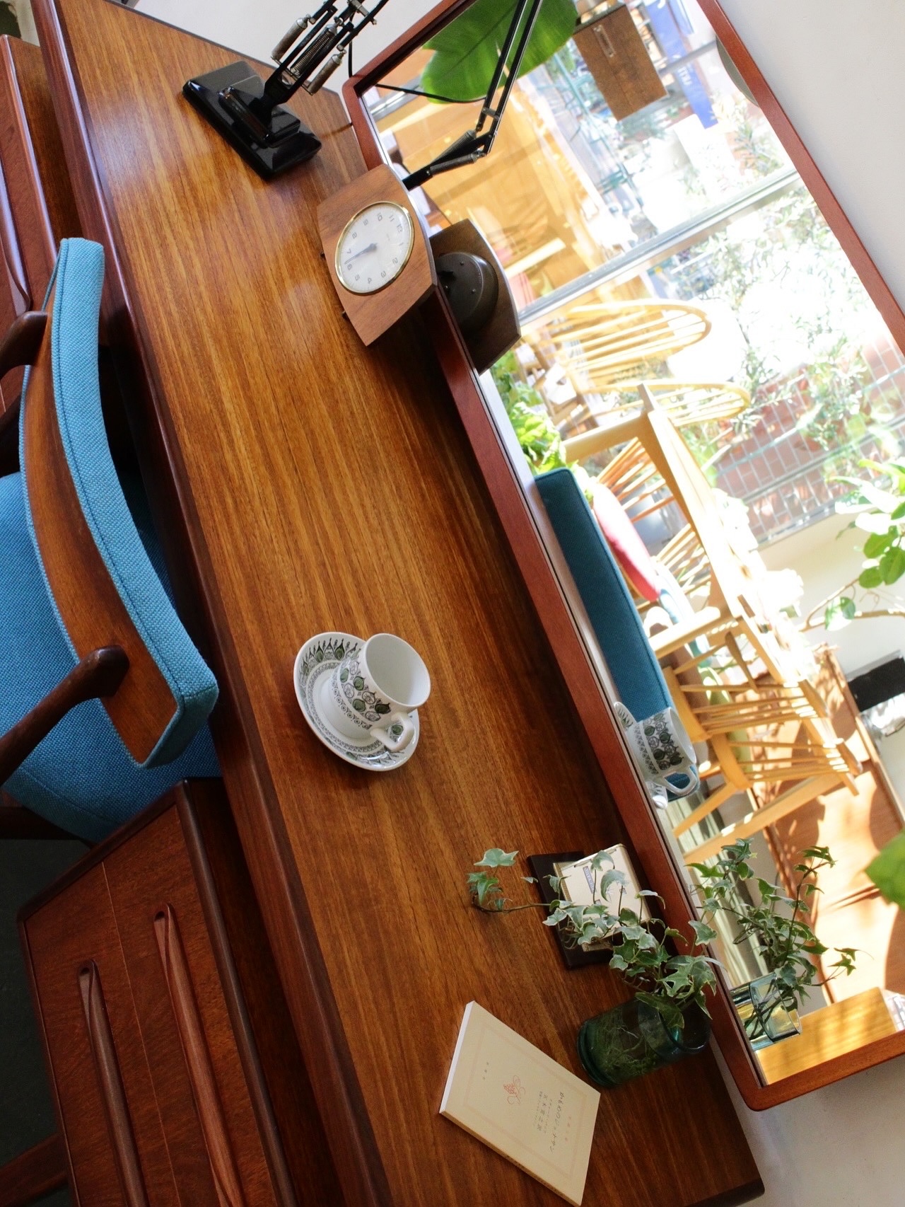 G-PLANのの中でも珍しい、幅145cmのドレッサーのレストアが完了しました。当時の生産量が少なかったのか、この20年で2〜3回しか入荷していない珍しいタイプです。なんと言っても一番の特徴は、本体から浮いた様に見える天板のデザイン。この隙間があるだけで、スッキリとした軽やかな印象になります。