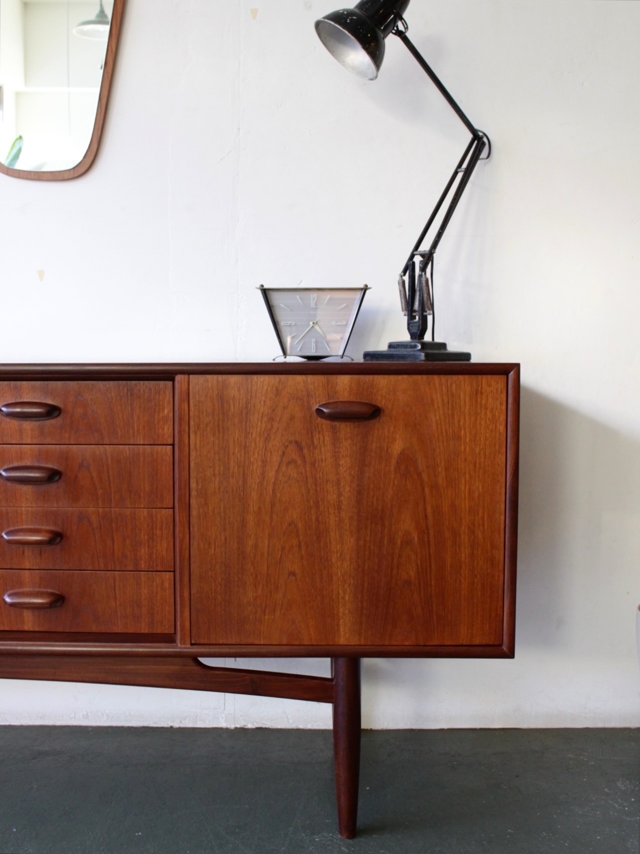 G-PLANの定番サイドボード、BrasiliaシリーズのLong Sizeの仕上が完了しました。思えば20年前、G-PLAN中心の店をつくる!と鼻息荒くスタートしたトランジスタ。同ブランドのサイドボードといえばFrescoシリーズしか知らなかった自分に、あ〜、これもG-PLANですね、と教えてくれたのは当時仲の良いお客様であり、その後も友人として長い付き合いになったY君でした。こちらも店主としてプライドもあるし、なんせG-PLANを中心としたUK Vintageの家具店と謳っている以上、間違っても知らなかったとは言えず、『あ〜、そうだよ。よく知ってるね。』と返しました。という情報はいりませんね。