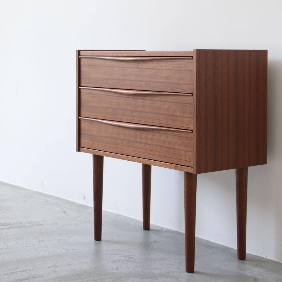 | 備考 | *受注生産品 :ご注文からお届けまで3〜4ヶ月程度頂いております。 幅60 × 奥行30cmと場所を選ばないコンパクトなチェスト。電話代としても便利だし、玄関先に置いて外出時に必要なものをトレイなどに入れて置いてもいいですね。実用性もさることながら、お気に入りの照明器具や植物を飾ったり、ちょっとしたディスプレイも楽しめそう。さまざまな部屋で活躍出来る一台です。 |