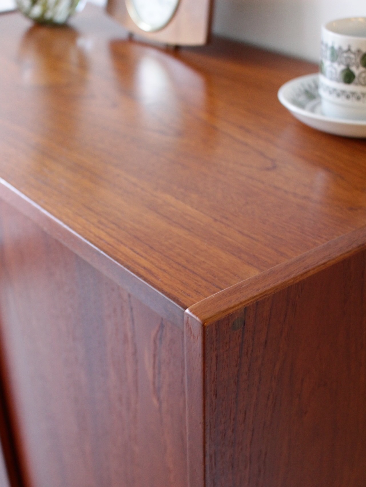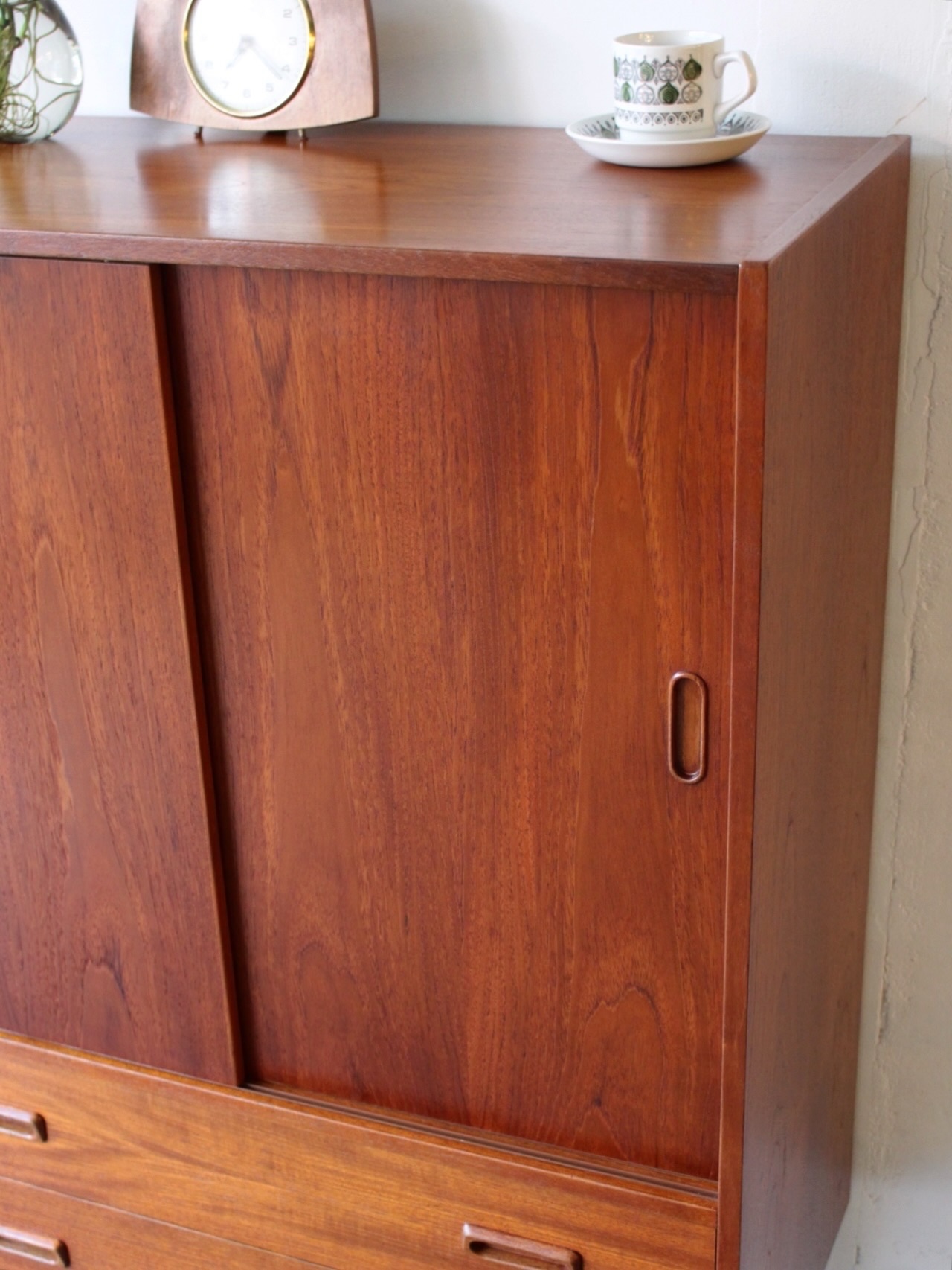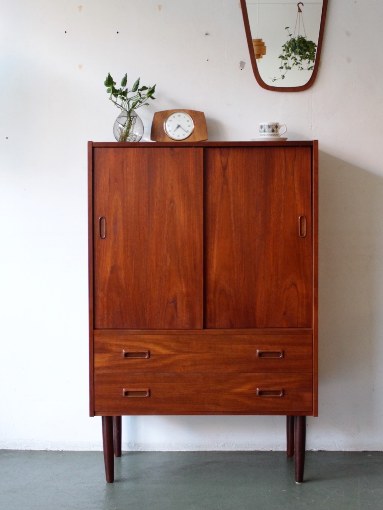 | 備考 | *仕上済、ラッカー塗装(即納可) これぞ程よいサイズ。スェーデン製の小ぶりな食器棚が入荷しました。幅79cmと置く場所を選ばない食器棚ですが侮るなかれ。上部キャビネット内部は2枚の可動棚板が設置され抜群の収納力。食器をあまり重ねたくないという方には嬉しい配慮ですね。下方部引き出し内はパントリーとしても使えるし、ダイニング・キッチン周りの布物を収納しても便利。天板の上には実用的に家電製品を置いてもいいし、遊び心を持って照明器具や植物、お気に入りの食器をディスプレイするだけでグッといい雰囲気になりますね。食器棚をイメージし易い様にCupboardと明記しましたが、もちろん使い方は自由。リビングに置いて収納家具としても活躍しそうです。 |